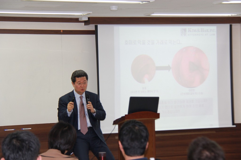 On May 3, 2013 B.J. Kim gave a lecture on English contracts law at the LawnB. The lecture highlighted the lack of understanding and false concepts of international law that often lead to litigation and legal disputes; and also, how to address these issues in the creation of contracts. The lecture was approximately seven hours and had around twenty attendants who worked in the areas of corporate legal representation, planning, and attorney.